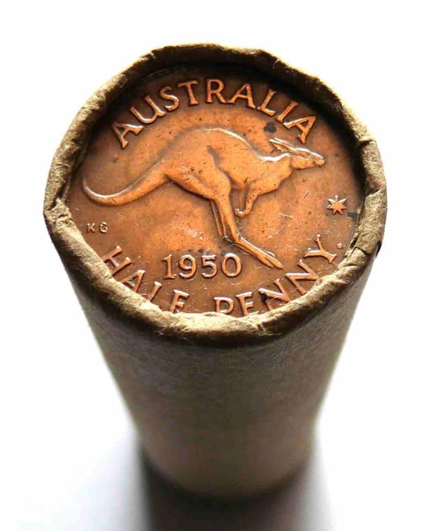 ROLL OF 1950 KGVI, AUSTRALIAN HALF PENNY (50X CIRCULATED COINS IN A ROLL). 488296+13