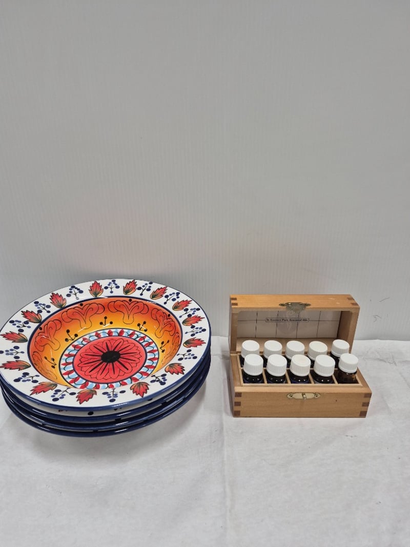 4 BRIGHT BOWLS AND A BOX OF 10 OILSCondition: Good - Refer To ImagesLOCATED RACK 10C586111+11