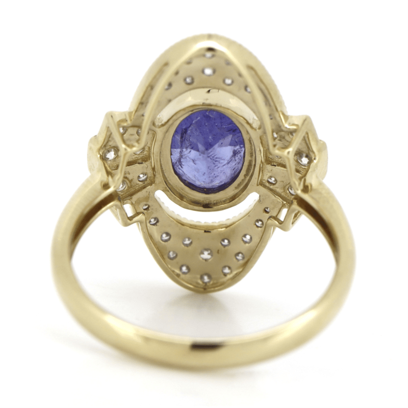 14K YELLOW GOLD, TANZANITE AND DIAMOND, DECORATIVE RING. The Centre Features, One Oval Cut, Vivid Blue, Tanzanite (1.59Ct, Moderate Natural Inclusions), Bezel Set. Surrounding The Centre Are, 40 Round Brilliant Cut, Diamonds (0.52Ct Tdw, H-I Colour, Si-I1 Clarity), Claw Set. Ring Size N 1/2. Valuations Provided by an Independent Third-Party Professional Not Directly Associated With Lloyds Auctions at AUD $$12,000.00This valuation has been conducted by an independent third-party professional. The valuation amount is an assessment by the issuing valuer and does not reflect the auction value of the item. Any inquiries regarding the valuation should be directed to the issuing valuer (refer to contact details on the certificate), as Lloyds Auctions has no affiliation or influence over the valuation, the valuer, or the stated amount. Condition: Good - Refer Images 0645847+29