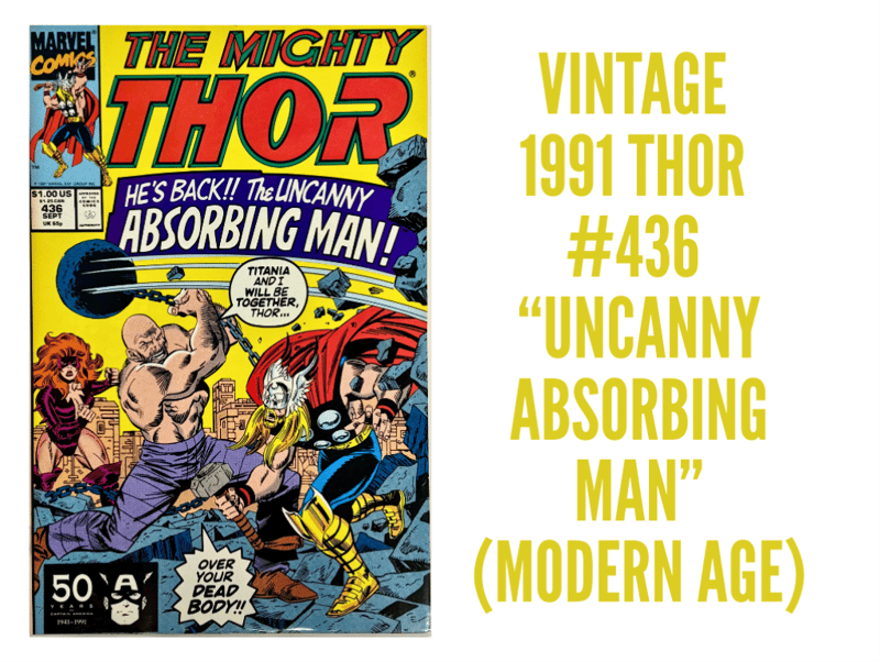 1991 THE MIGHTY THOR #436 – MODERN AGE THOR VS. ABSORBING MANThis 1991 The Mighty Thor #436 Sees The Return Of The Absorbing Man And Titania In A Dramatic Clash With Thor. Bold Art And Classic Villain Action Make This Modern Age Comic A Strong Collector'S Pick.- 1991 The Mighty Thor Issue #436- Modern Age Marvel Showdown- Features Absorbing Man And TitaniaSize: Condition: Good - Refer To Images+106