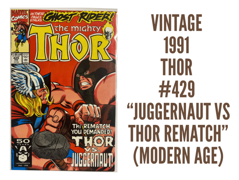 1991 THE MIGHTY THOR #429 – JUGGERNAUT VS. THOR REMATCHThis 1991 The Mighty Thor #429 Features The Long-Awaited Rematch Between Thor And Juggernaut, With Ghost Rider Making An Appearance. Bold Red Cover Art And Intense Action Await.- 1991 The Mighty Thor Issue #429- Juggernaut Vs. Thor Storyline- Guest Appearance By Ghost RiderSize: Condition: Good - Refer To Images+119