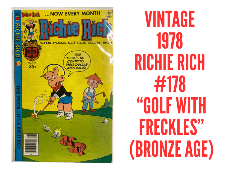1978 RICHIE RICH #178 – GOLF-THEMED HARVEY COMICS FUNRichie Rich #178 Brings Golf-Course Hilarity With Richie Discovering The True Value Of Money — Literally. A Classic 1978 Issue From The Long-Running Harvey Comics Series.- 1978 Richie Rich Issue #178- Harvey Comics Humor Title- Golf Cover Gag With FrecklesSize: Condition: Good - Refer To Images+123