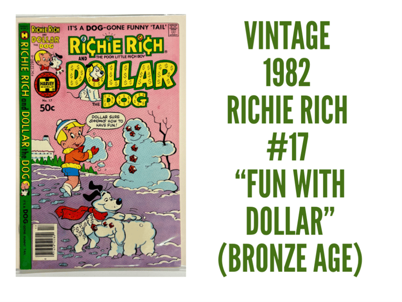 1982 RICHIE RICH AND DOLLAR THE DOG #17 – WINTER-THEMED HIJINKSSnowy Fun From 1982 In Richie Rich And Dollar The Dog #17! This Winter-Themed Issue Shows Dollar Building A Snowdog In A Wholesome And Hilarious Harvey Comics Classic.- 1982 Richie Rich And Dollar The Dog Issue #17- Winter-Themed Humor Comic- Fun With Richie Rich And DollarSize: Condition: Good - Refer To Images+124