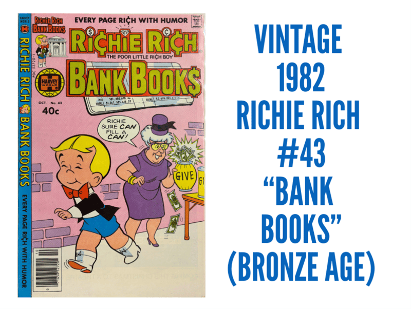 1982 RICHIE RICH BANK BOOKS #43 – DONATION HUMOR COMICThis 1982 Issue Of Richie Rich Bank Books #43 Shows Richie Making Charitable Donations In Style. Another Humorous Take On Wealth And Generosity From Harvey Comics.- 1982 Richie Rich Bank Books Issue #43- Donation And Giving-Themed Comedy- Classic Harvey ComicsSize: Condition: Good - Refer To Images+127