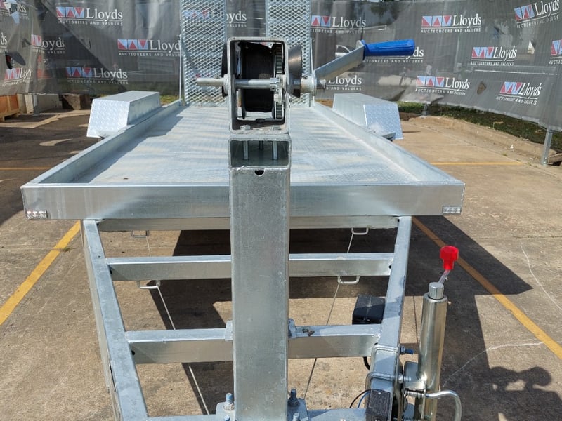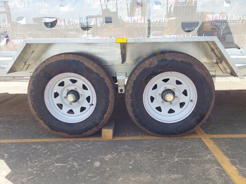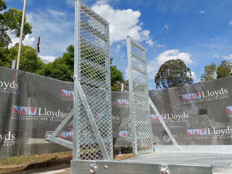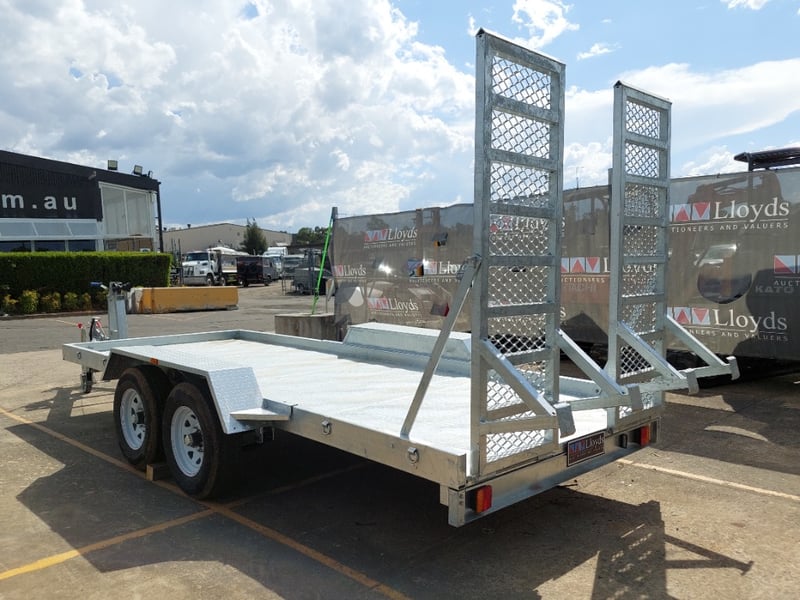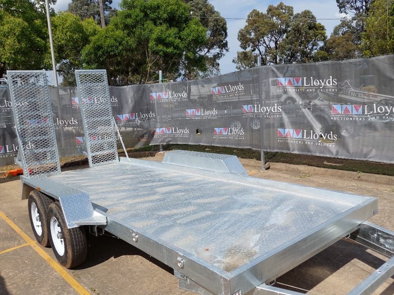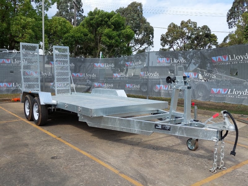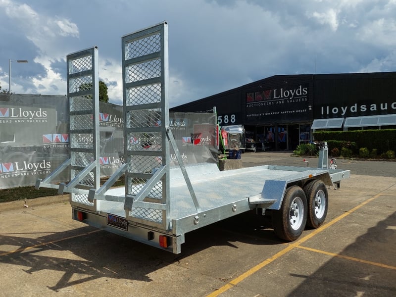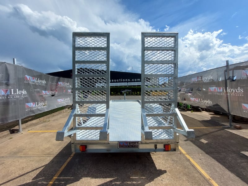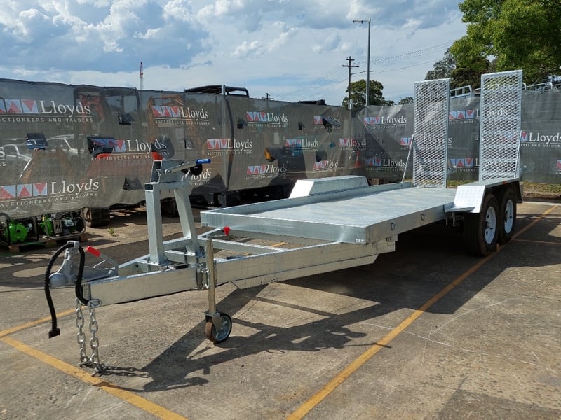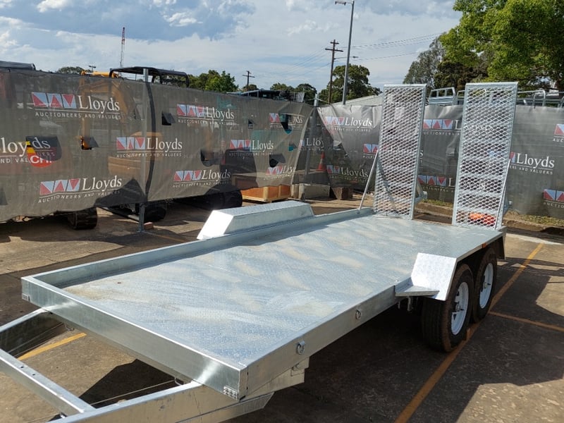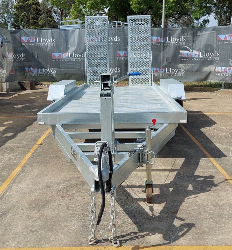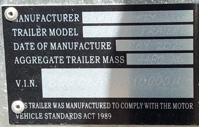 Unused Green Pty Ltd Heavy Duty Plant Trailer Year: 2025Make: Green PTY LTDVIN: 6NRPLATRISS000011Model: Plant trailerColour: Silver / Galvanised Configuration: Dual axleSuspension: Leaf-spring - Rocker rollerDescription: Hand winch with strap, Suit 70mm tow ball, Jockey wheel, Break away unit, 7pin flat plug, Handbrake, Dual safety chains, Galvanised checker plate floor, 15inch Steel rims with 225/75R15 tyres, Folding ramps 1820mm Long x 600mm Wide, Various tie down locations, Inside Tray Dimensions: 4950mm (L) x 1780mm (W)Trailer length: Approx. 7500mm Trailer width: Approx. 2450mmATM: 4480kgTare: 1120kg#MMRNO KEY