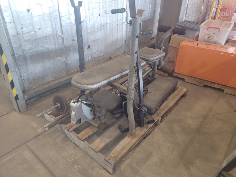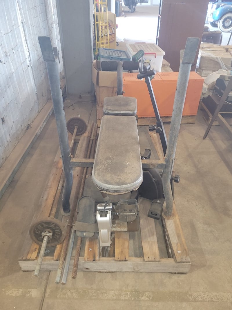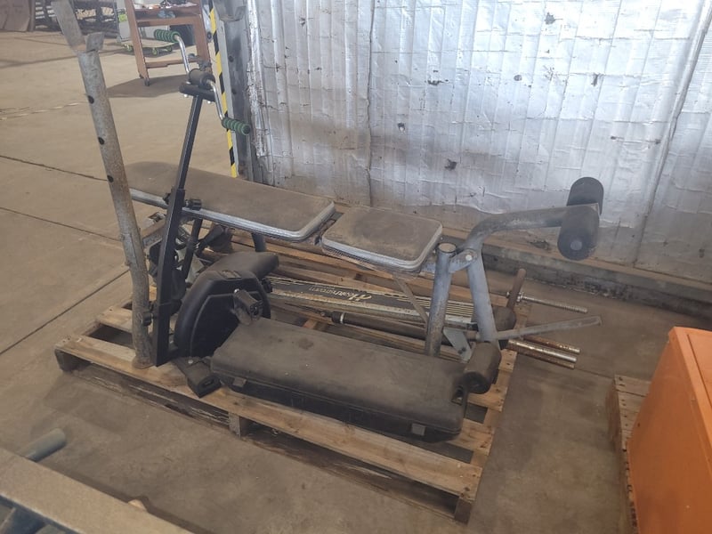 One Pallet holding Weight Lifting Bench and More. Used Condition. Inspection Advised. SOLD as LOT.