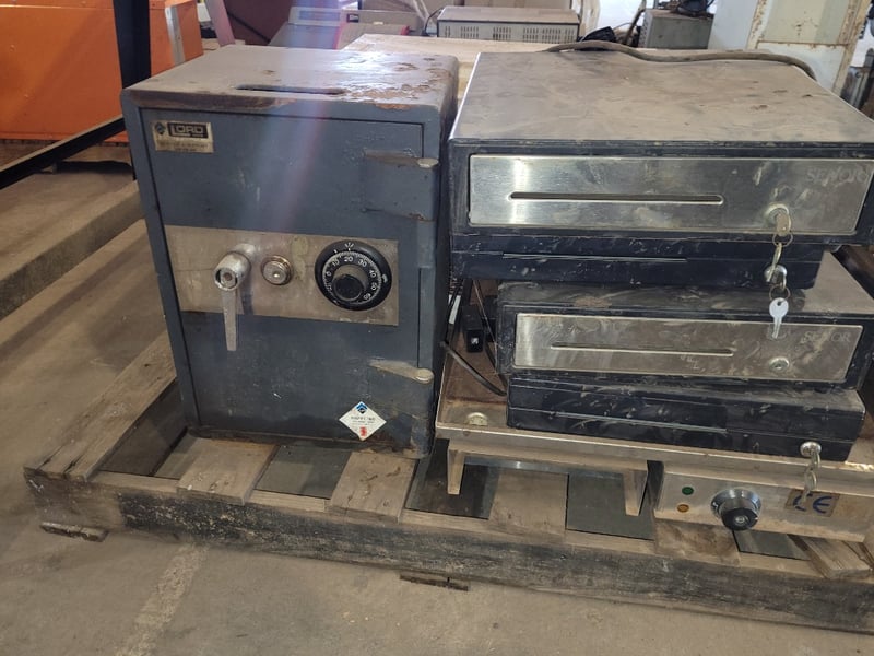 One Pallet holding Secure Boxes, Air Conditioner and More. Used Condition. Inspection Advised. SOLD as LOT.
