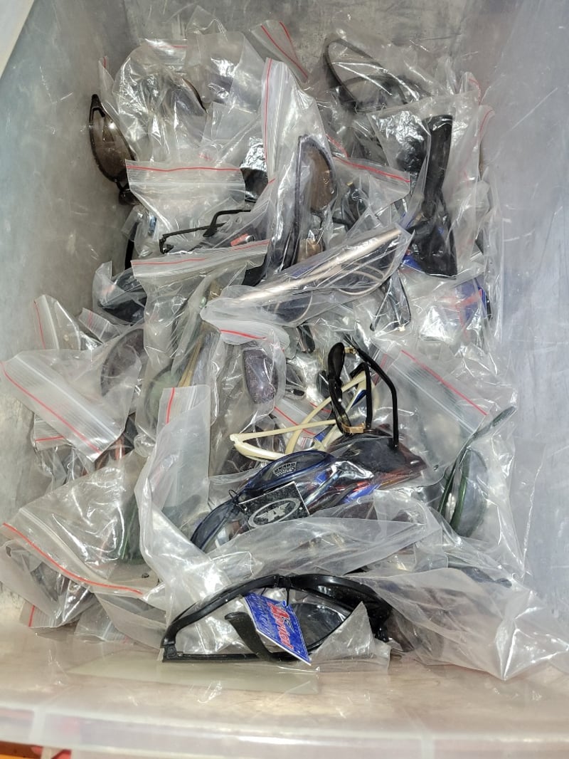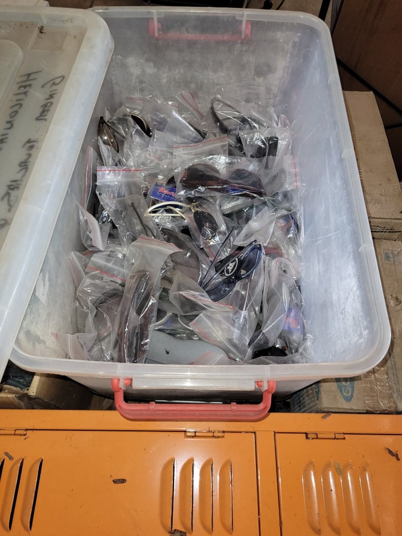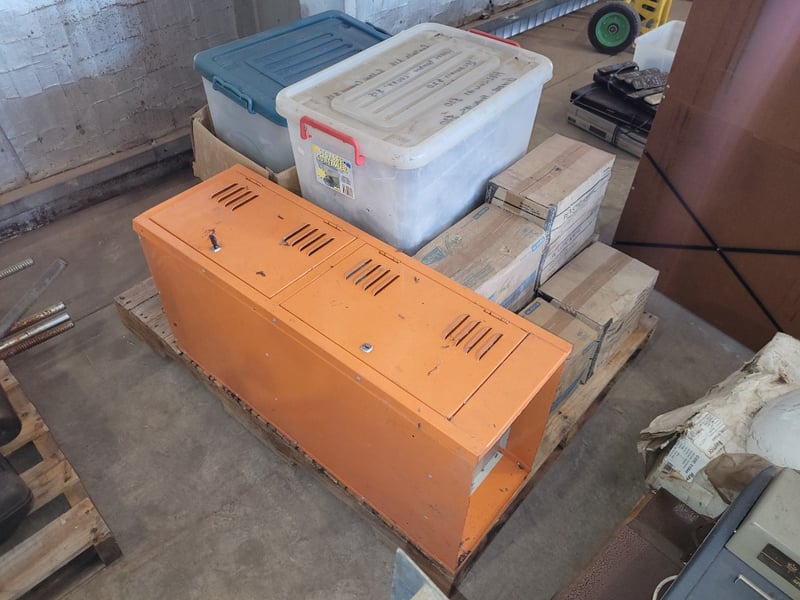 One Pallet holding Storage Locker, Bin of Sunny's and More. SOLD AS LOT.