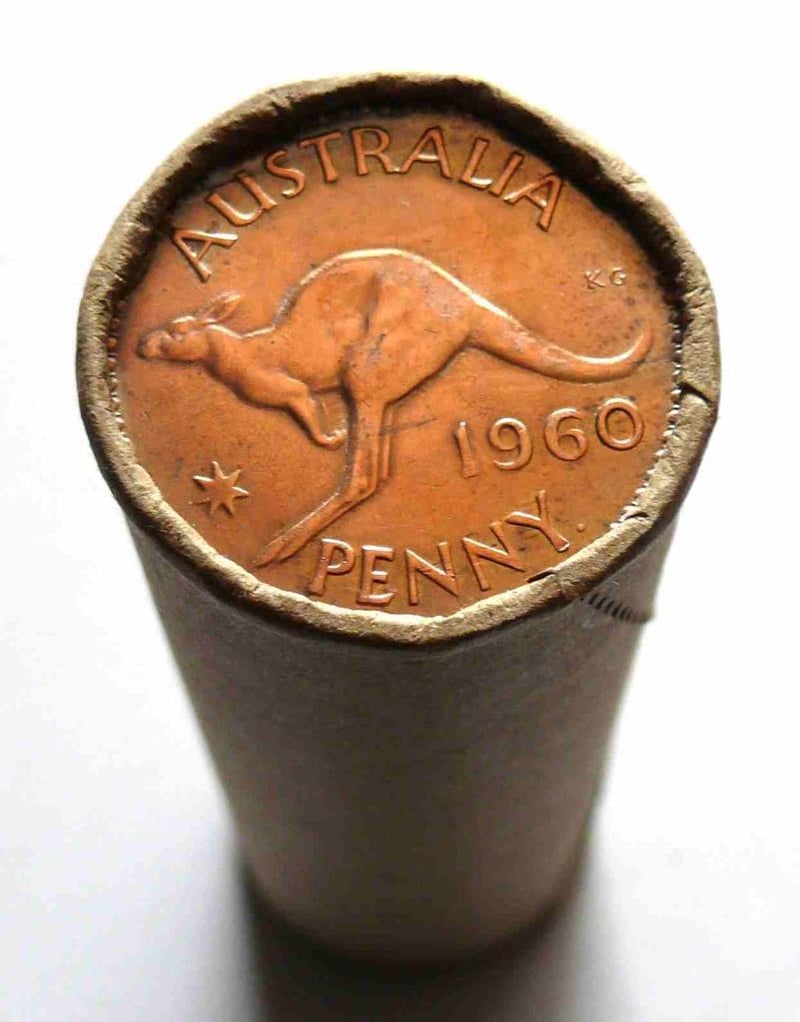 ROLL OF 1960 QELL AUSTRALIAN PENNY (50X CIRCULATED COINS IN A ROLL). 488296+10
