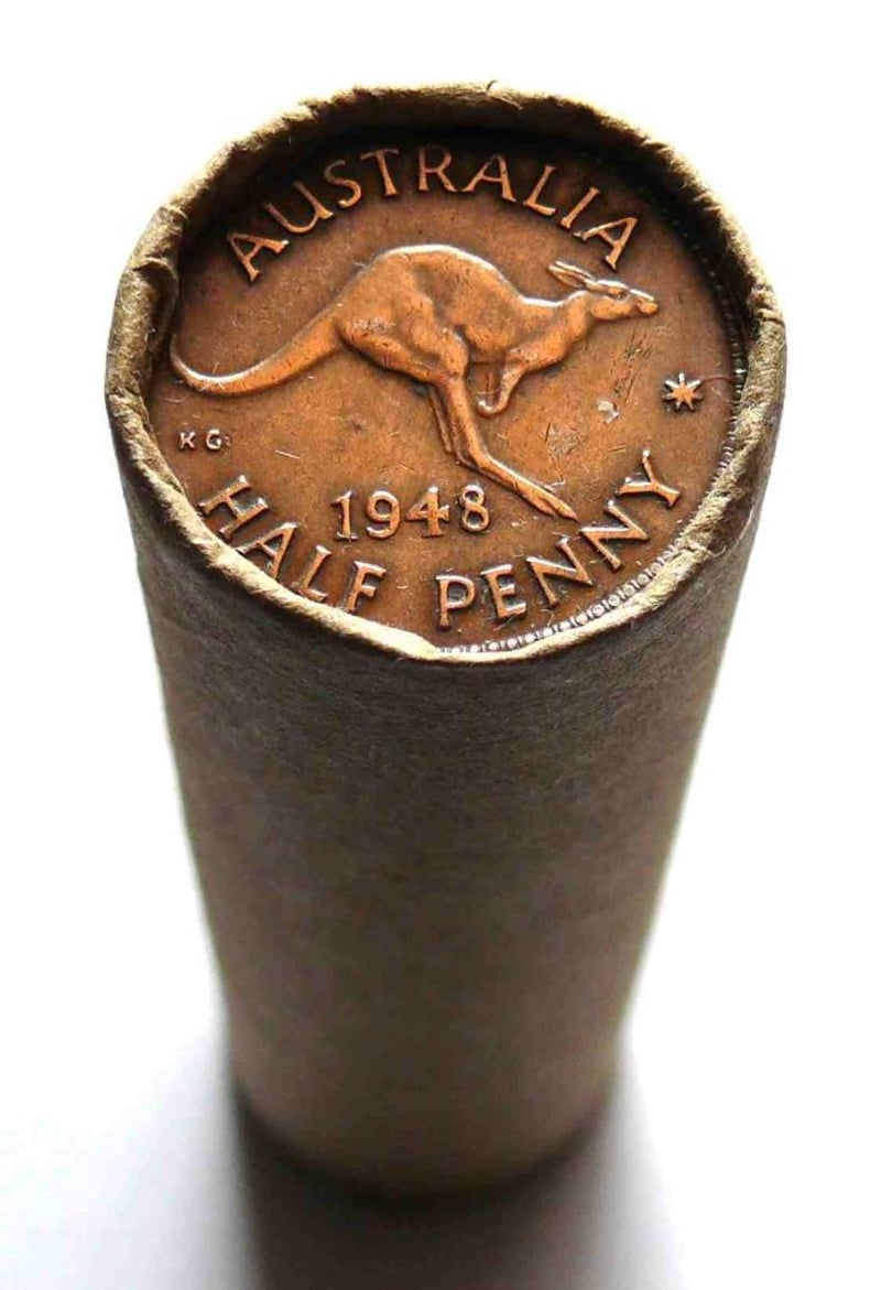 ROLL OF 1948 KGVI, AUSTRALIAN HALF PENNY (50X CIRCULATED COINS IN A ROLL). 488296+12