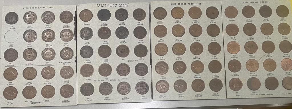 AUSTRALIA COMPLETE PRE DECIMAL PENNIES SET FROM 1911 TILL 1964 TOTAL 79 COINS INCLUDING RARE 1925 & 1946 PENNY, KINDLY NOTE THIS ALBUM EXCLUDE 1930 PENNY…ALSO ALBUM CONDITION IS POOR AND BROKEN CONDITION 311112+17