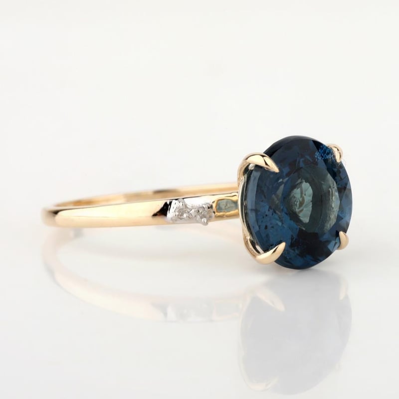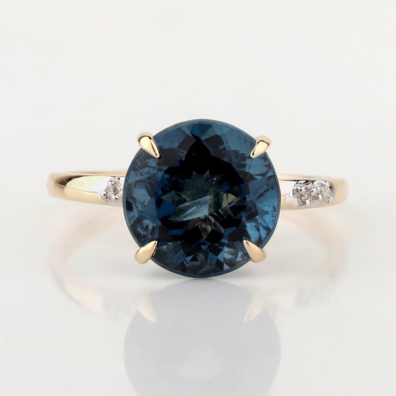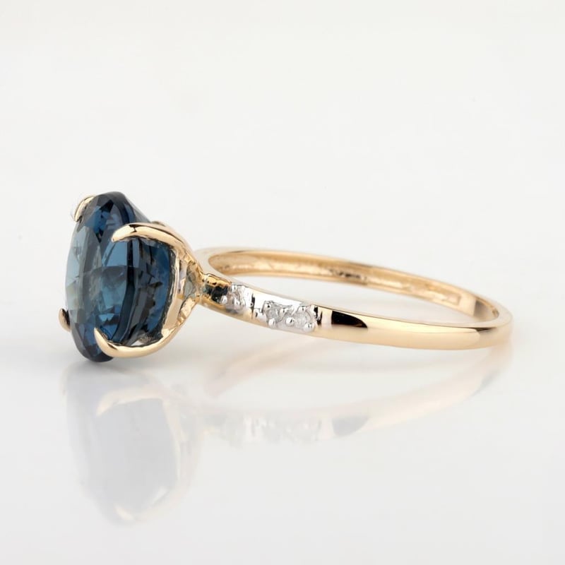 9CT YELLOW GOLD NATURAL LONDON BLUE TOPAZ & DIAMOND RING
