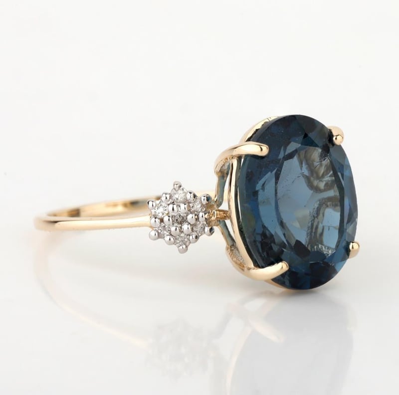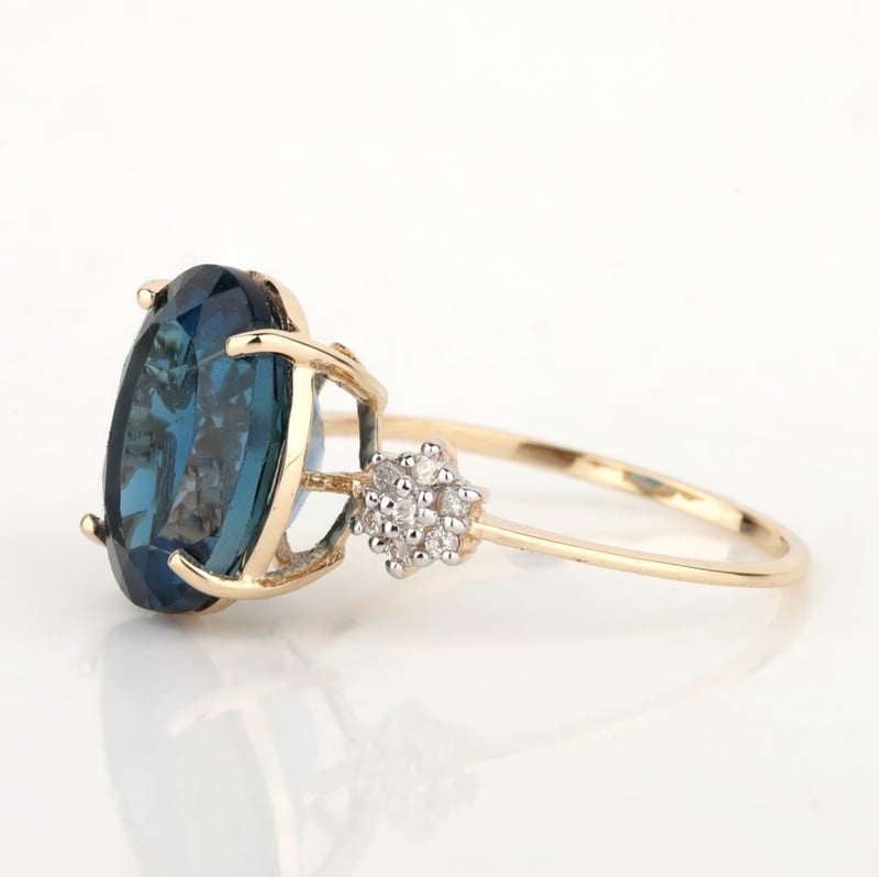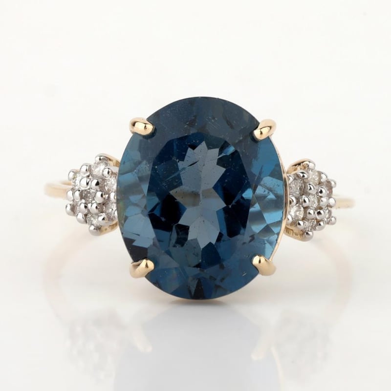 9CT YELLOW GOLD NATURAL LONDON BLUE TOPAZ & DIAMOND RING Weight Of The Item: 2.68 G Fineness Of Metal(S): Yellow Gold 9Kt The Ring Consists Of (1) Oval Brilliant Natural London Blue Topaz. Surrounding The Main Stones Are Round Brilliant Cut Natural Diamonds. Identification: Natural London Blue Topaz Color: Blue Shape: Oval Brilliant Cut No. Of Stone: 1 Dimension: 12 Mm X 10 Mm X 7.2 Mm Weight: 5.8 Carats Cut: Very Good Identification: Natural Diamond Shape: Round Brilliant Cut Weight: 0.13 Cts Cut: Excellent.Certificates Are Provided By Gemological Science International (Gsi), An Independent Third-Party Gemological Laboratory Based In The Usa And Recognised Among The Top 10 Gem Labs Globally Markings: 9ct Condition: Good - Refer Images 0 488218+5