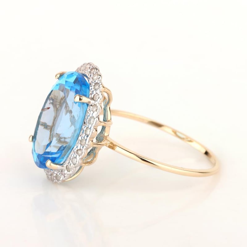 9CT YELLOW GOLD NATURAL SWISS BLUE TOPAZ & DIAMOND RING