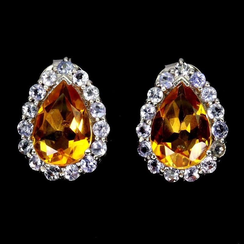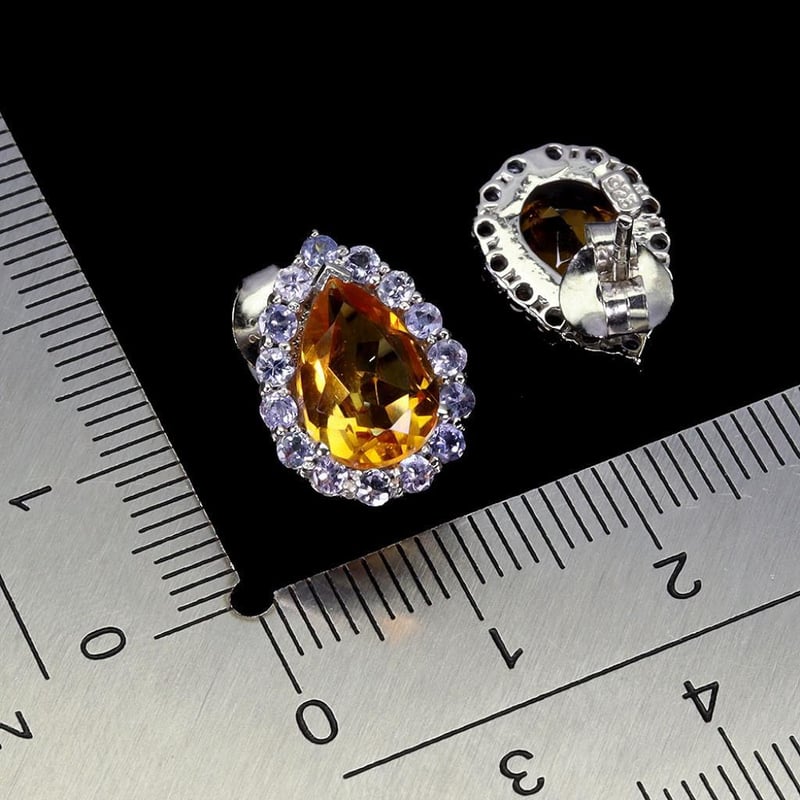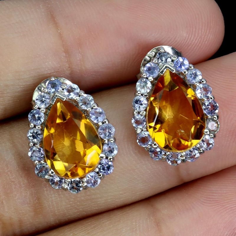 Natural Citrine & Tanzanite Earrings. Made In Solid Sterling Silver And Plated In 14K White Gold. Features Natural Golden Citrine And Natural Violetish Blue Tanzanite'S. Earrings Measure 14.0 X 10.0 Mm.