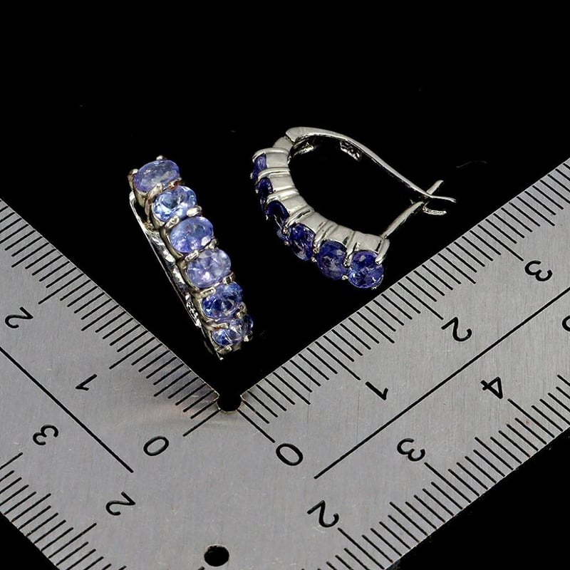 NATURAL TANZANITE EARRINGS. Natural Tanzanite Earrings. Made In Solid Sterling Silver And Plated In14K White Gold. Features Natural Violetish Blue Tanzanite'S. Earrings Measure 12X4Mm Condition: Good - Refer Images 0488258+16