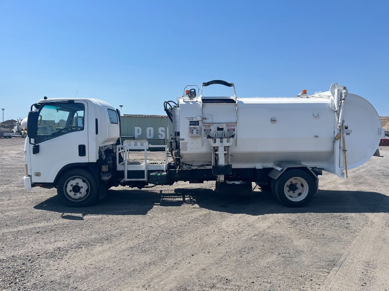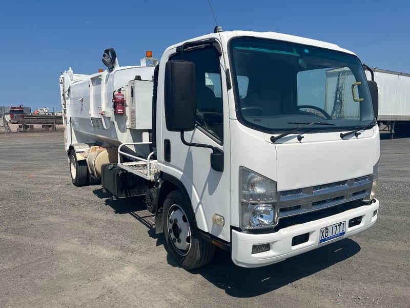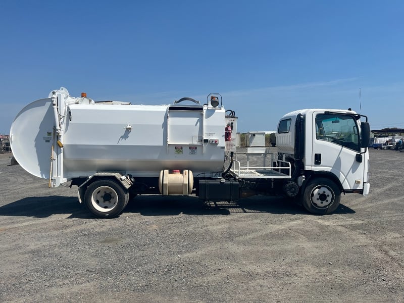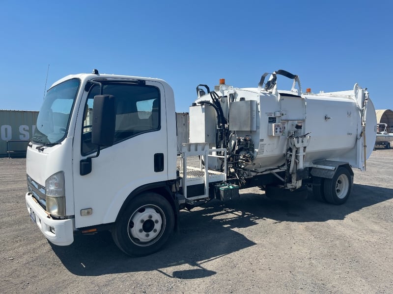 Description: 2011 Isuzu NPR555 Side compacting Truck, Auto, Air-con, Eco mode for driving, Cleaned after every use, Light and switch panel inside cab, Work safety lights outside cab, safety rails and ladders.