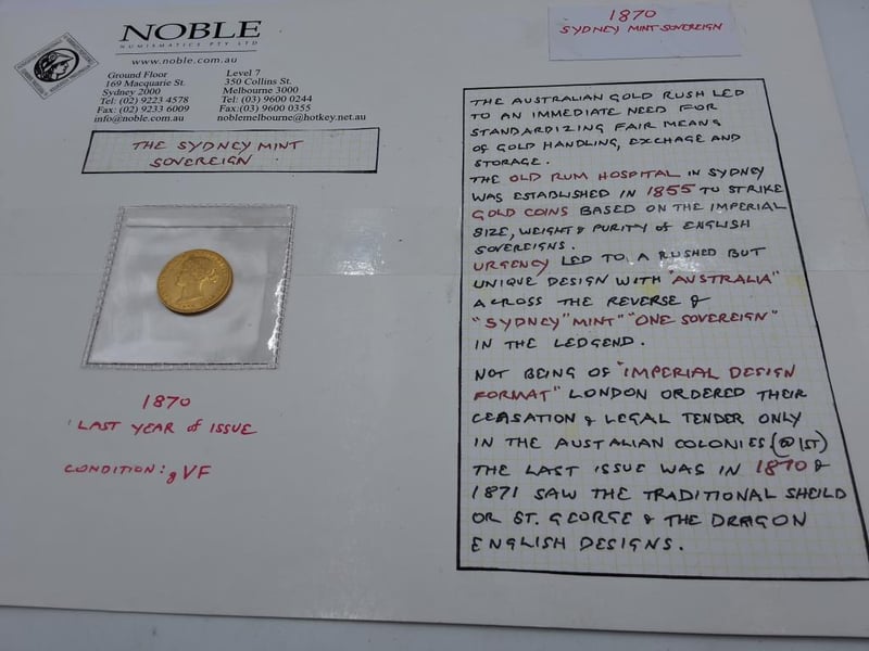 COLONIAL AUSTRALIA : THE "SYDNEY MINT SOVEREIGN" OF 1870 THE VERY LAST DATE OF ISSUE - A HIGH GRADE CIRCULATION COIN , CONDITION GVF .....HISTORY 782478+18