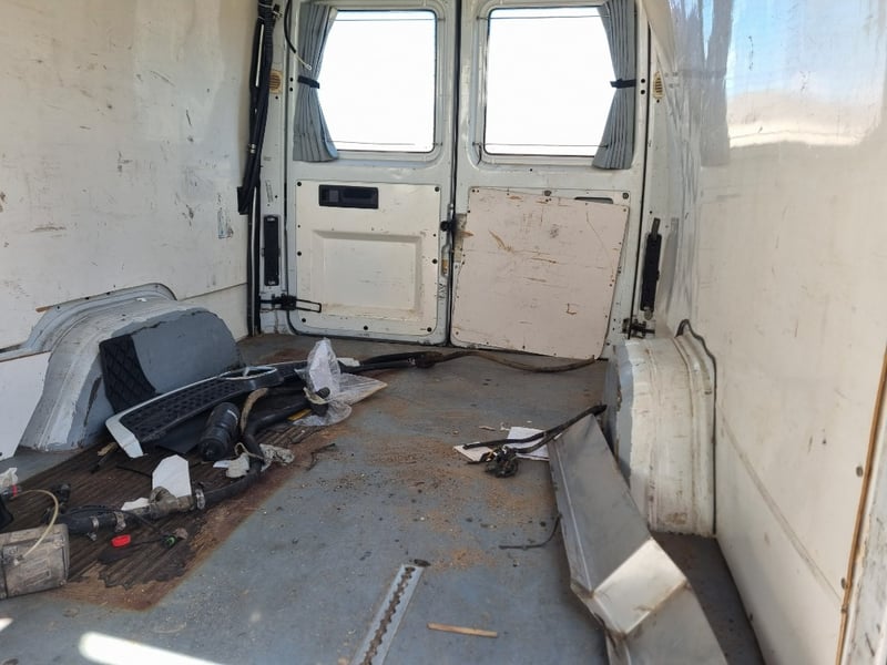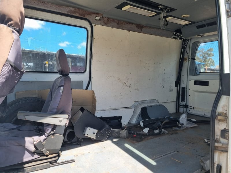 drivers seat disconnected , loose wiring , cracked windscreen - damages throughout