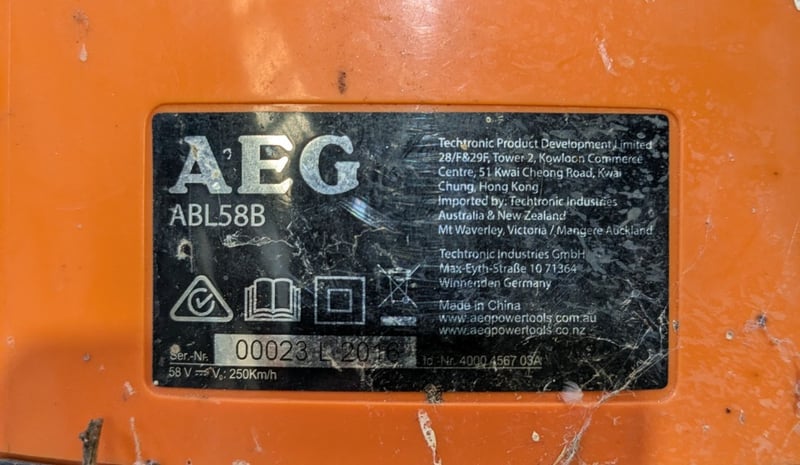 58V AEG Leaf Blower ABL58B - Skin OnlyNOTE: WORKING CONDITION UNKNOWN, PRODUCT IS IN USED CONDITION