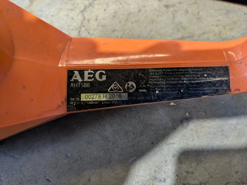 AEG Hedge Trimmer 58v AHT58B - Skin OnlyNOTE: WORKING CONDITION UNKNOWN, PRODUCT IS IN USED CONDITION
