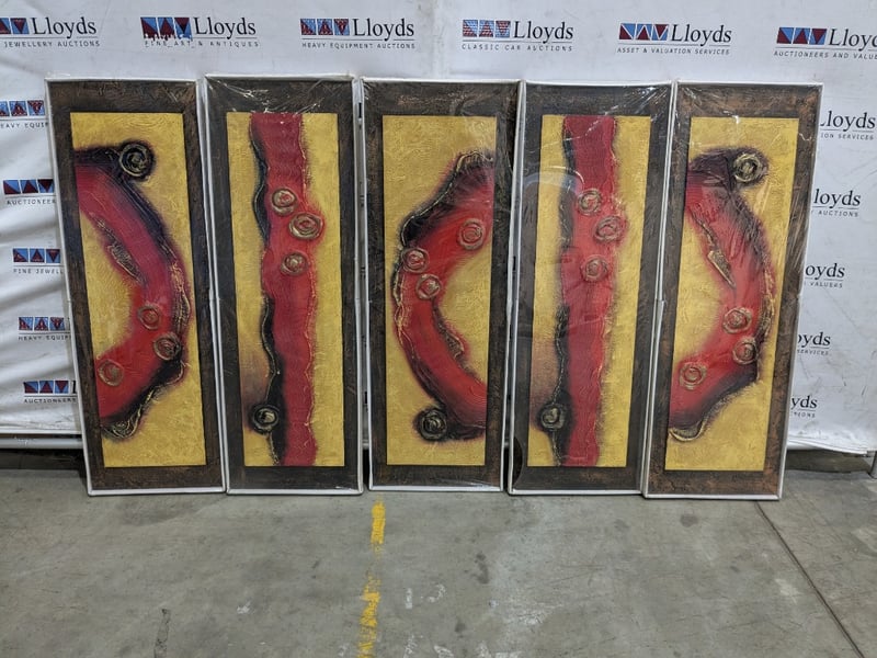 ASSORTED MIXED MEDIA PAINTINGS ON TIMBER BASE Quantity - 5Size - 40cm x 120cmSOLD AS LOT