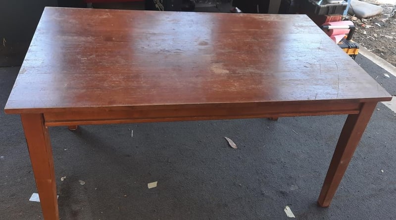 Solid timber dining table unrestored Dimensions: 1500 mm L x 900mmw