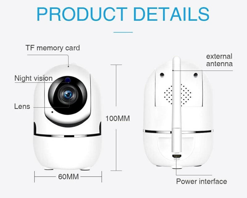 Mini Wi-Fi Security Camera, 1080p/720p, white, auto movement sensors, cloud storage, motion tracking, night vision, two-way audio. WHITE
