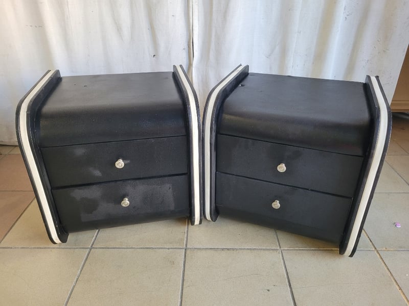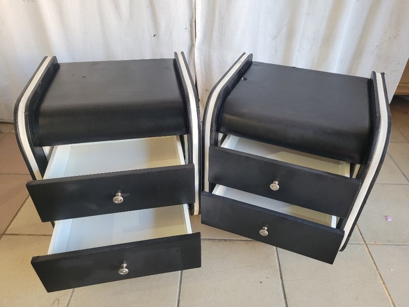 Nightstand, 2 Drawers, Leather Style, Black FinishDimensions H:50cm W:44cm D:49cmSOLD AS LOT