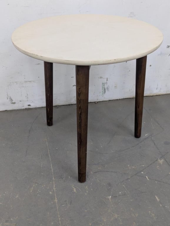 Side Table, Cream Marble Top, Timber Legs Dimensions: H 55cm x W 60.5cm x D 60.5cm