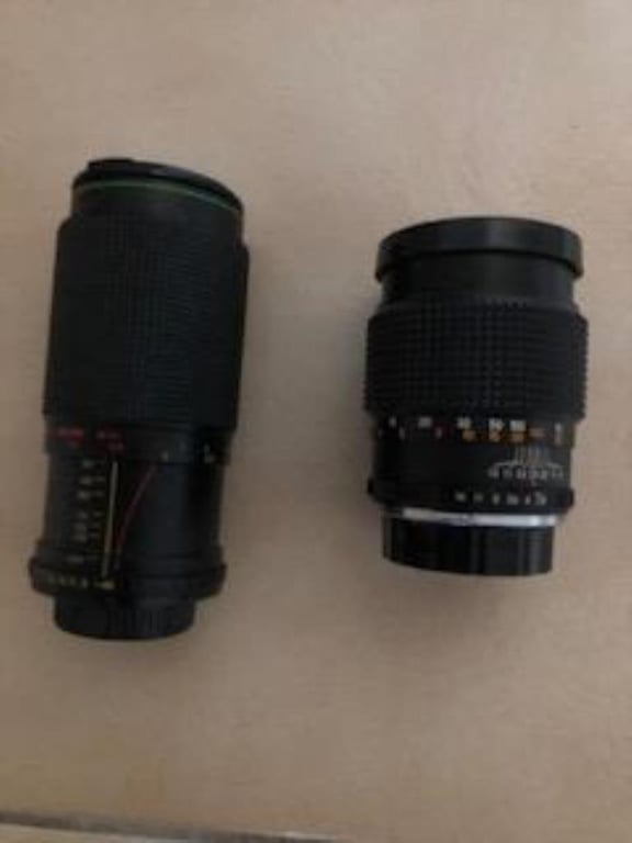 2 Lenses, auto aubell 1:2.8, F::135mm, 3-30m, HANIMEX AUTO ZOOM, C-Micro 1:4.5, 1:80-200mm, with carrying bag, Made in Japan