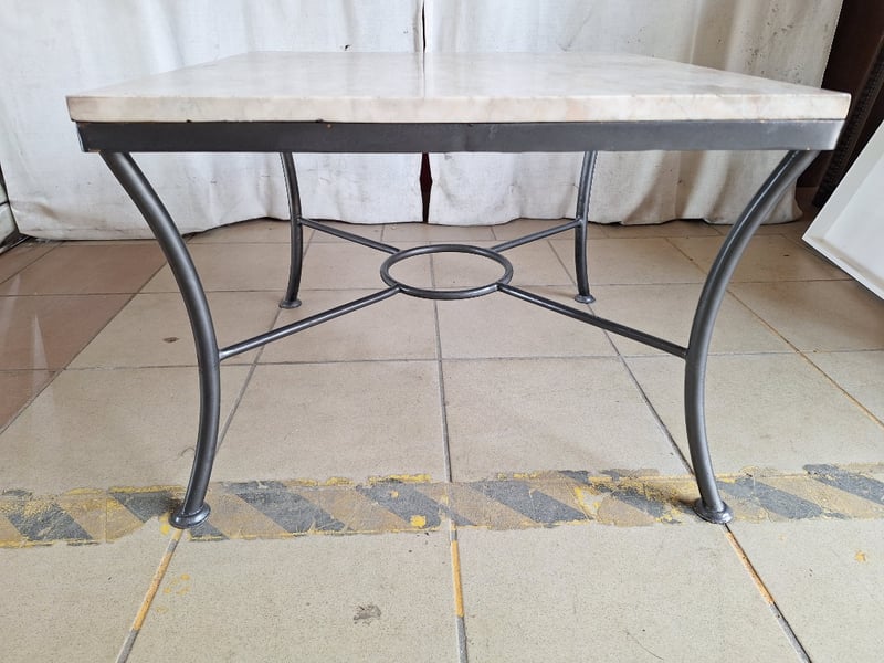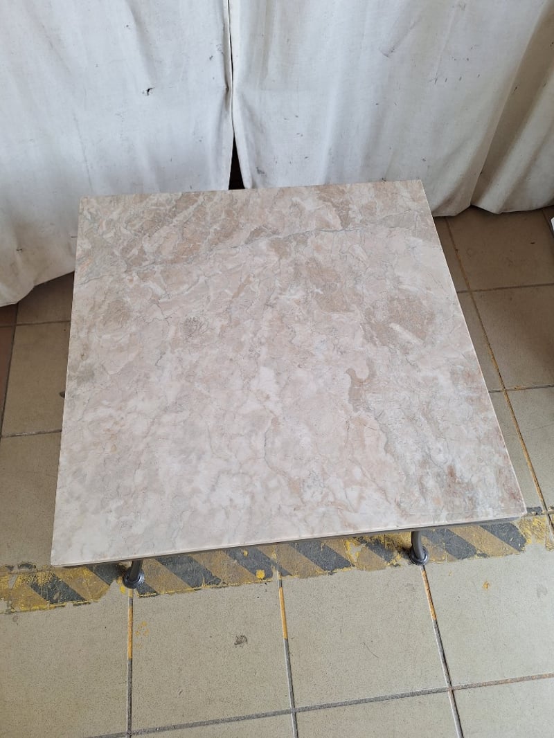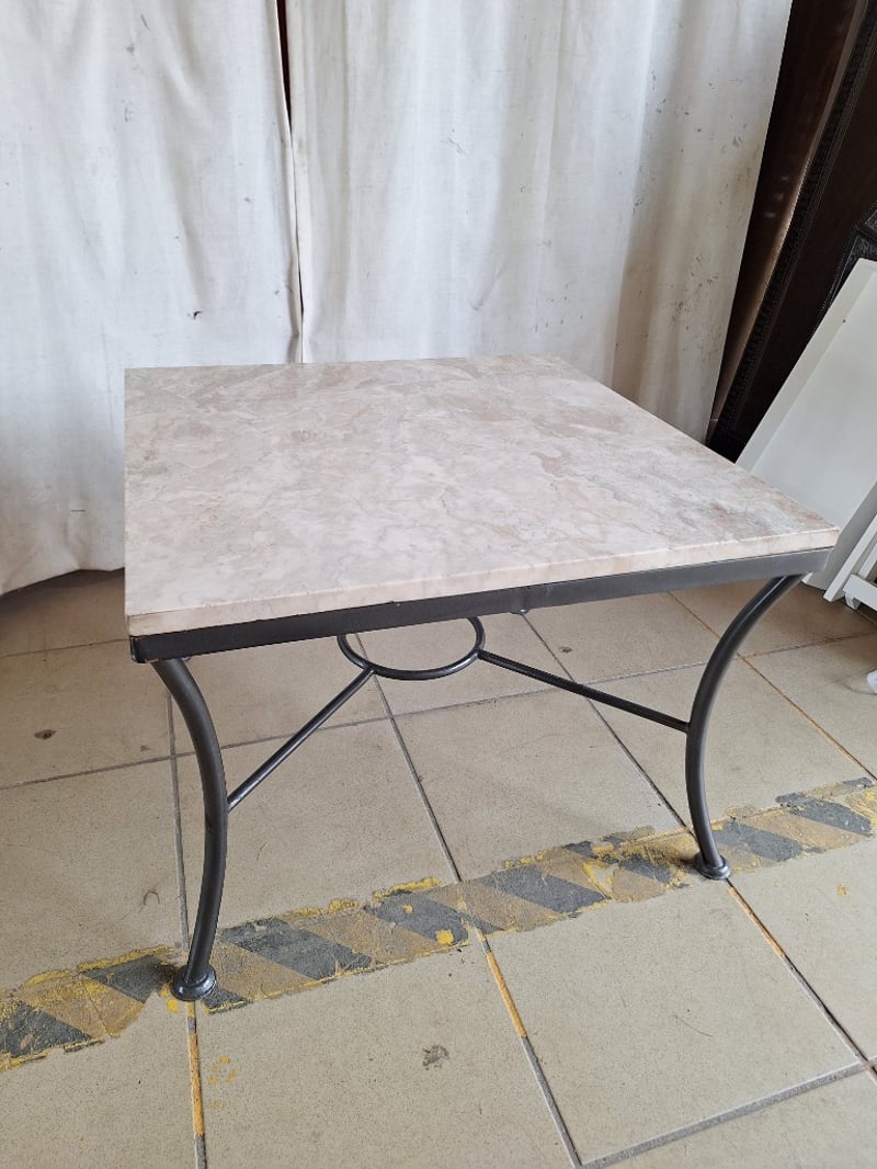 Outdoor Dining Table/Coffee Table, Metal Style, Marble Style, Black & Natural Finish Dimensions H:47cm W:65cm D:65cm