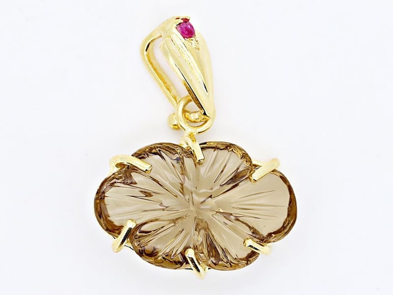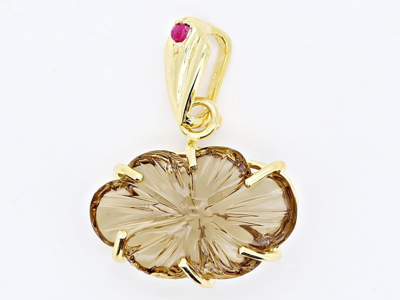 NATURAL CITRINE & BURMESE RUBY (UNHEATED) PENDANT ON 925 SILVER - WITH DIGITAL CERTIFICATE ONLY