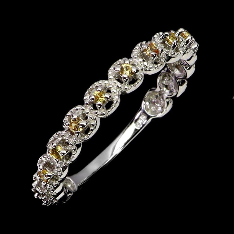 NATURAL DIAMOND CUT YELLOW SAPPHIRE BAND RING. Natural Diamond Cut Yellow Sapphire Band Ring. Made In Solid Sterling Silver And Plated In14K White Gold. Features Natural Diamond Cut Yellow Sapphires Surrounded By Natural Sparkling White Sapphires. Ring Size 7 Condition: Good - Refer Images 0488301+12