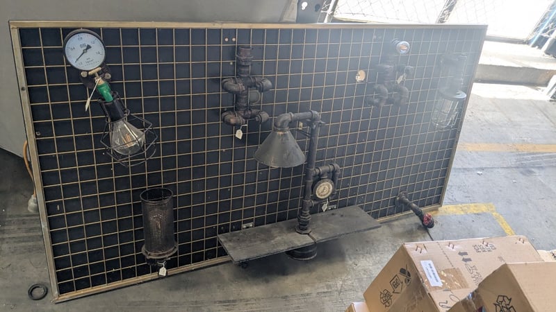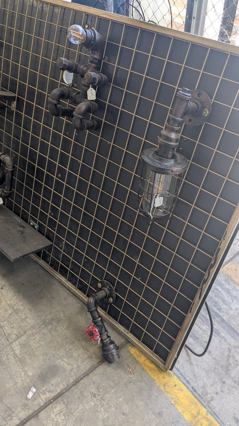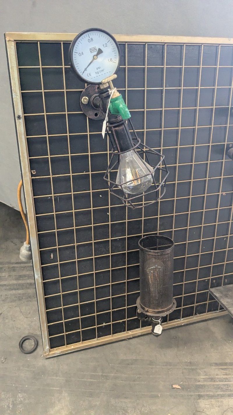 Steam Punk Style Lamp Display Board, Metal Frame, Timber Laminated BackDimensions: 1800mm(W) x 900mm(H) SOLD AS LOT