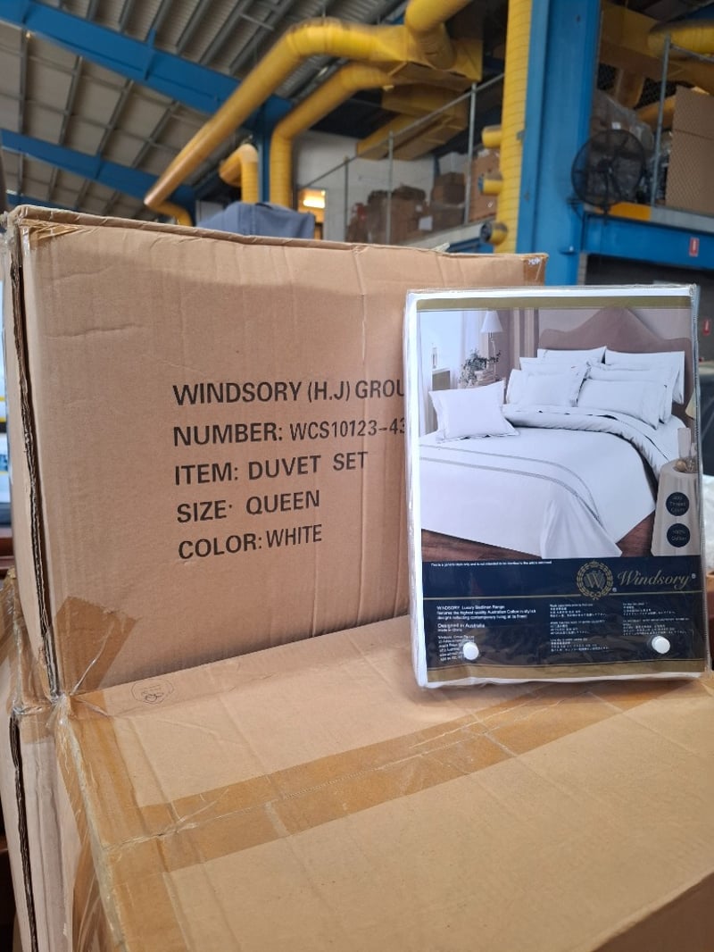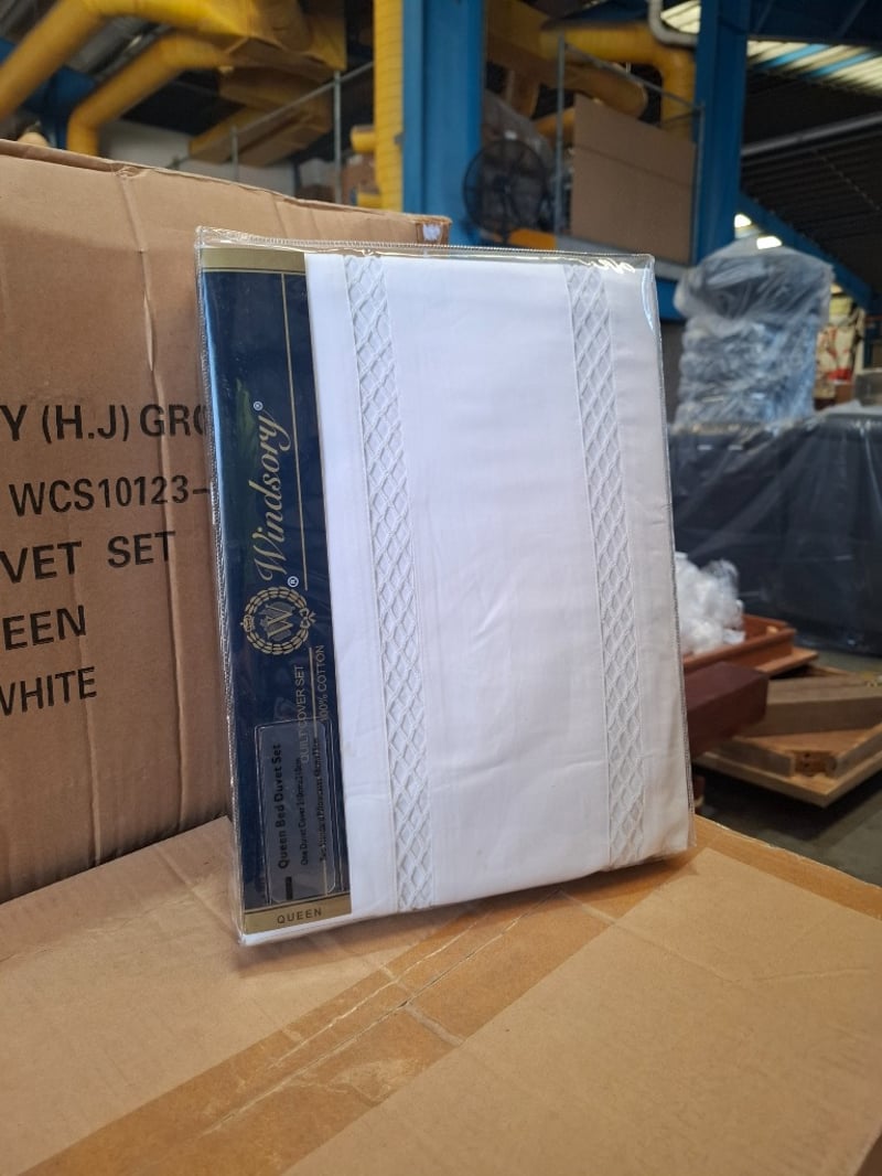Box of Queen Bed Duvet Sets, Product Code: WCS10123-434, Includes One Cover and 2 Standard Pillow Cases, Colour: White