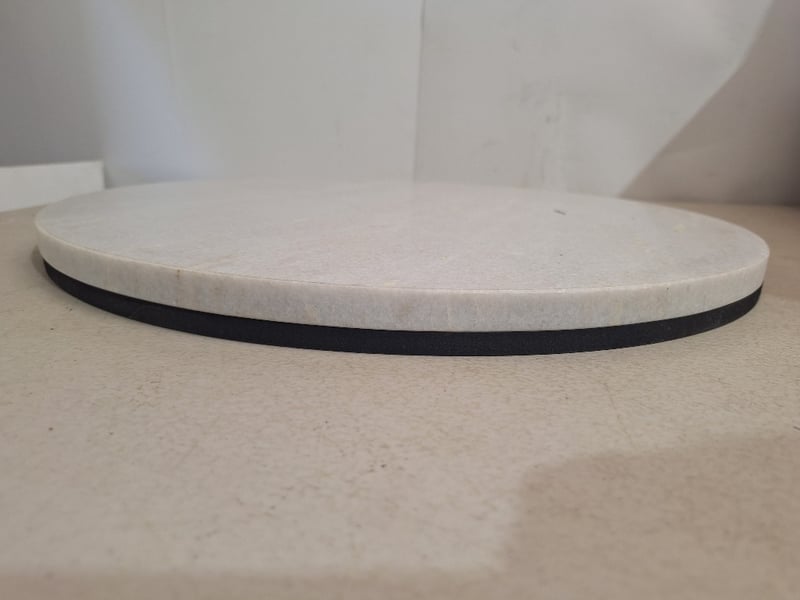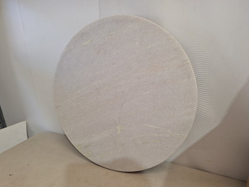 Marble Table Tops, Wooden base, Round Shape. Dimensions: H 3cm x W 45cm x D 45cm. Bid Per Each.
