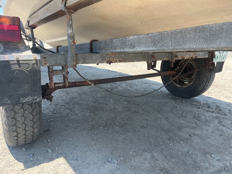 Description: Trailer is no good, will need a new one , can not be saved!!!!, No build plates on boat or trailer!!!!!!, Boat was working fine when engine was taken off and put on another boat.