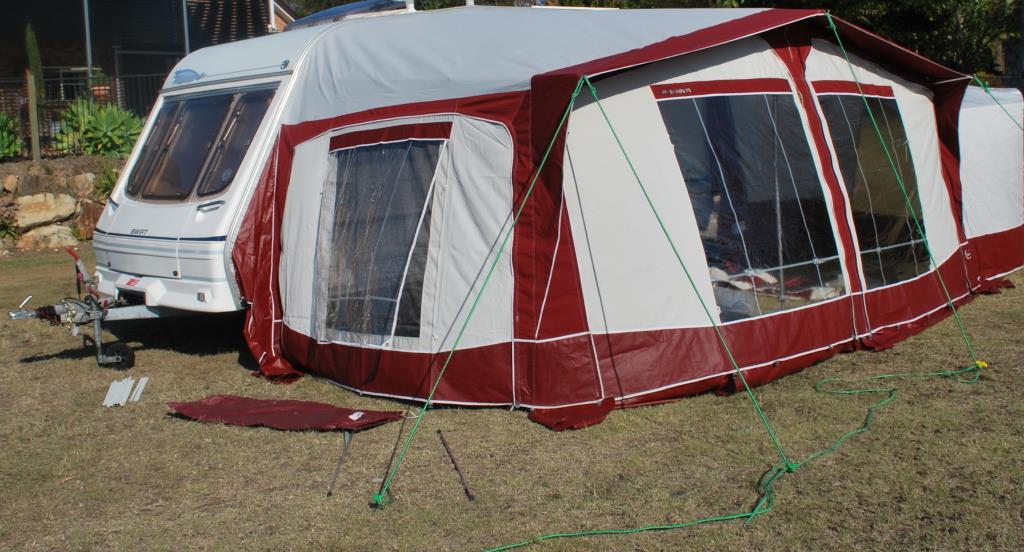 Description/ Extras:4.5m, fully insulated, double glazed windows, fly screens, including door, blinds and curtains, separate shower, toilet, vanity, hot water system, 3 way fridge, full oven, 4 gas burner cook top and grill, stainless steel sink with mixer tap, 2 single beds that convert into a double bed with storage beneath. 12v battery with integrated charging systems, plenty of storage with wardrobe, large skylight roof hatch, alko independent suspension, galvanised chassis, 950kg light caravan, easy to tow with family sedan, quality large fully zip closed annex attached separate annex for kids.
