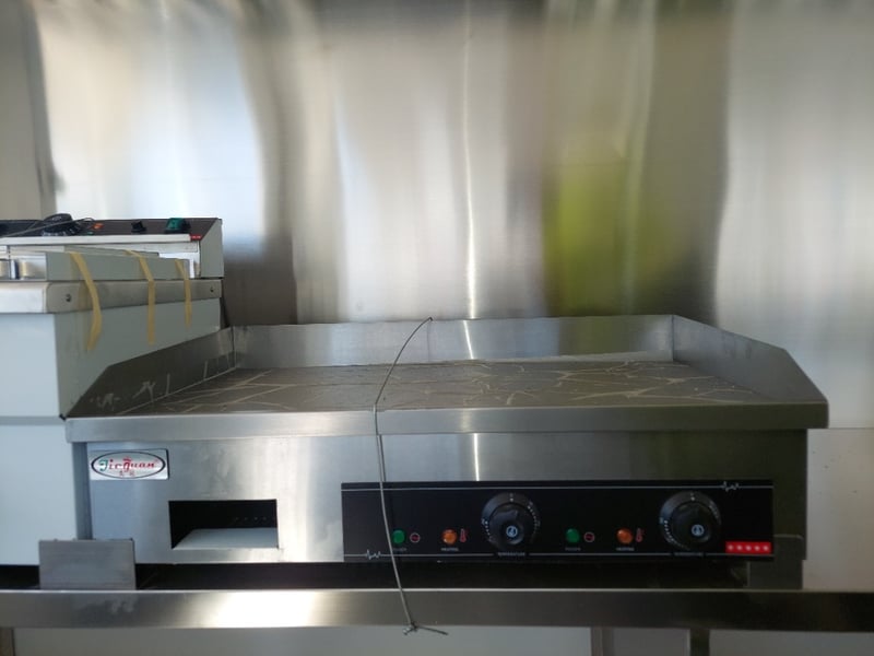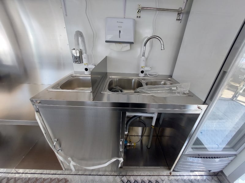 • Double bowl sink with hot and cold water and additional sink hand wash or rinsing sink with hot and cold water.