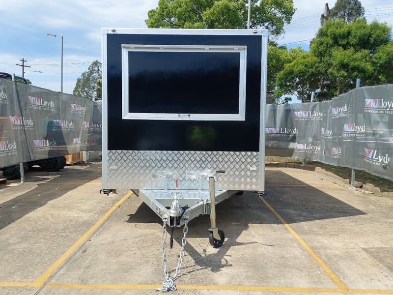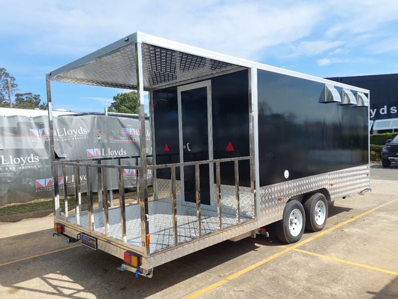 2025 Unused Dual Axle Enclosed 740 Food Trailer with Porch (Unused) - Black