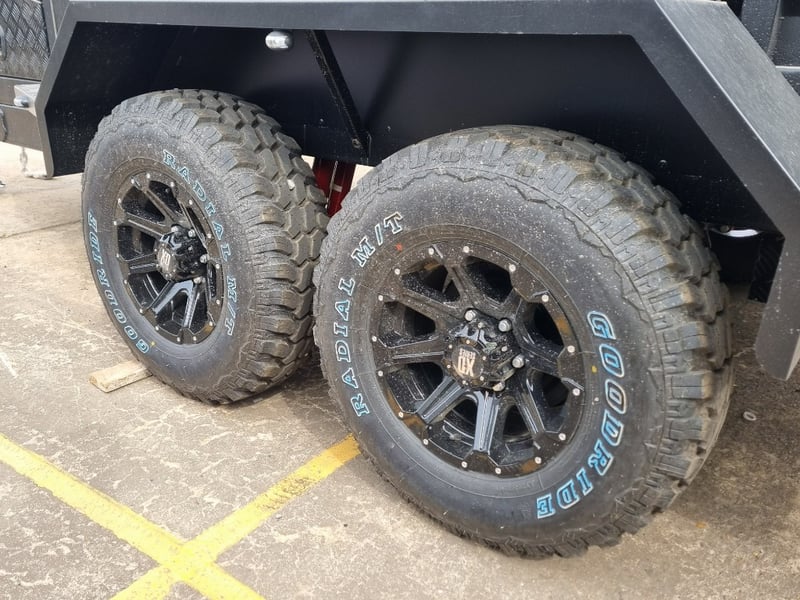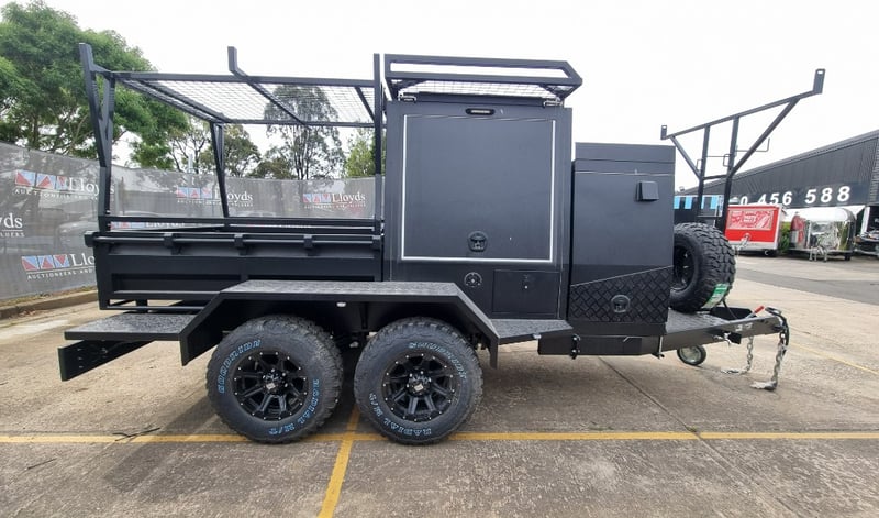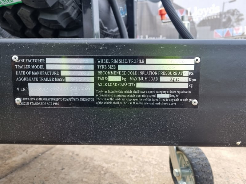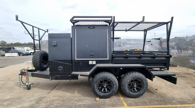 2025 Unused Tradie Trailer Black Year: 2025Make: Green Pty LtdModel: Tradie Trailer ( Tilt )VIN: 6NRB0XTRLSS000064Colour: Black Configuration: Dual Axle Tare: 1750 kg ATM: 3500 kgDescription: Measurements Overall size: -Approx* 5600mm(L) x 2200mm(W) x 2450mm(H)Canopy size- Approx*1500mm x 700mmx 1450mmTray size Internal - 1790mm x 1380mmx 400mmBody and Chassis Features- Galvanised plate and powder coated - 5* 265/75/R16- 4 * Independent suspension with two shock absorbers each side and coil springs- 4x4 - 1* 10inch heavy duty jockey wheel- 13mm Australian standard chains- 3.5T Australian standard tow hitcher- Breakaway system- Movable Roof RackInteriors and Features Lighting System- 6 *tall light - 2* number plate light - 2* Slimline LED box inside lightWater System - 1*electric water pump - 1*82L water tanks - 1*water filler - 1*draw bar mounted tapElectric System- 2 *Deep Cycle Battery 100AH- 1* 200w solar panel on top movable - 1*2000W power inverter with charger- 1*240v inlet 1*240v outlet- Radio and speakers - 50L fridge - Anderson wires - All Australian standard wires and equipment#MMRKEY #: MMR3