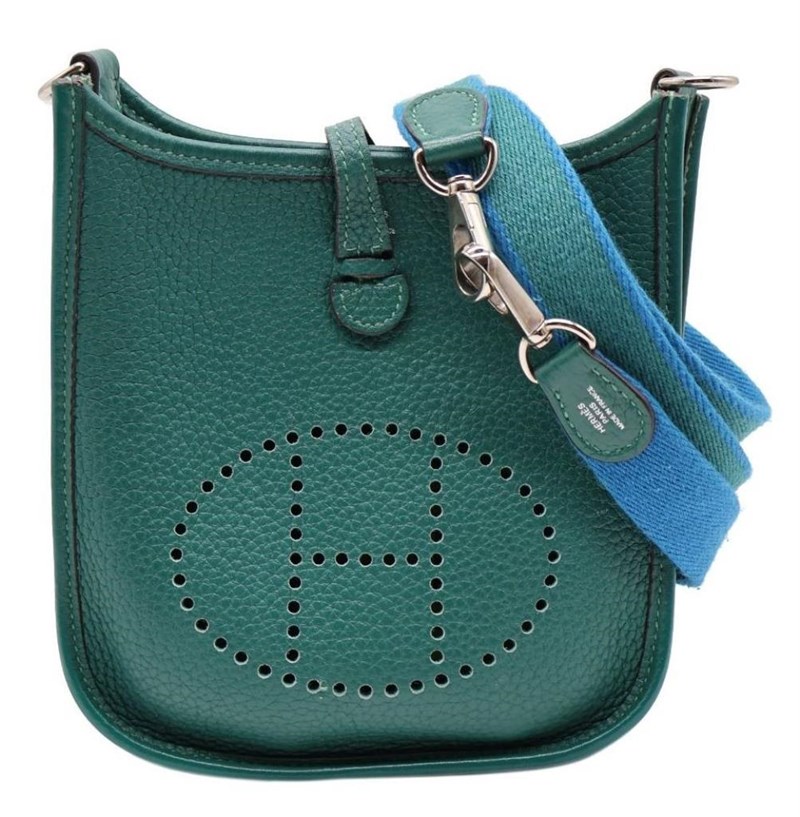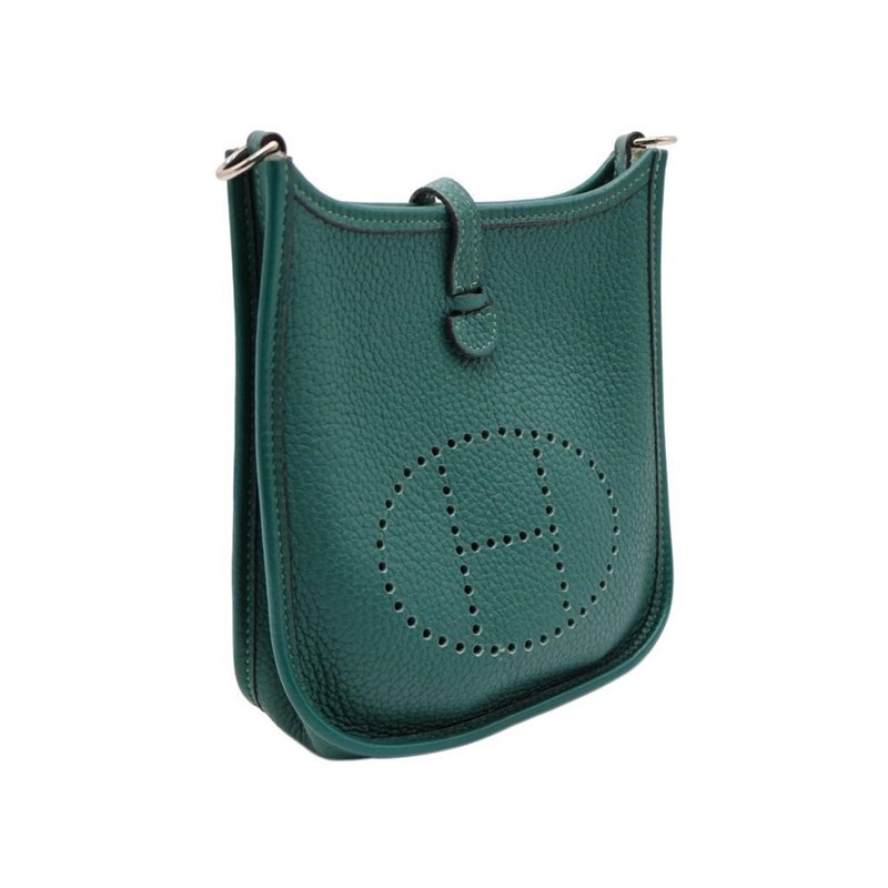 HERMES TAURILLON CLEMENCE LEATHER EVELYNE TPM BAG Exterior Material Leather with silver-tone hardware, snap button closure on top and a shoulder strap. Interior Material Suede lining with a main compartment. Length: 17cm Height: 17cm Depth: 5cm Strap Drop: 47cm Detachable Additional Condition Report - Minor sign of wear and tears on exterior - Minor wear in interior - Minor scratches on hardware Comes With - A Detachable Strap - Certificate of Authenticity CROSSED DOCKED 155556+18