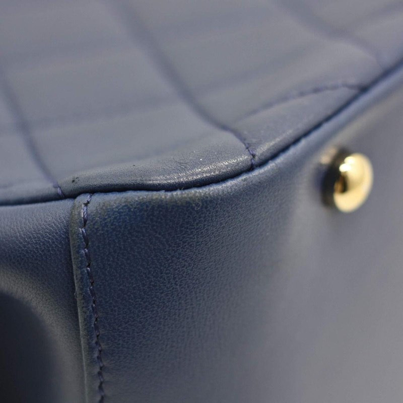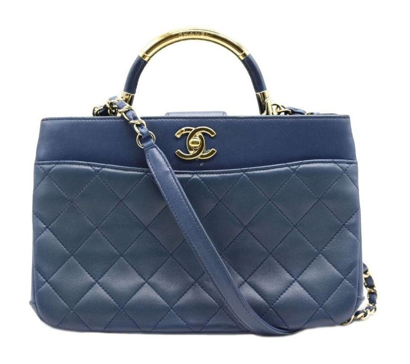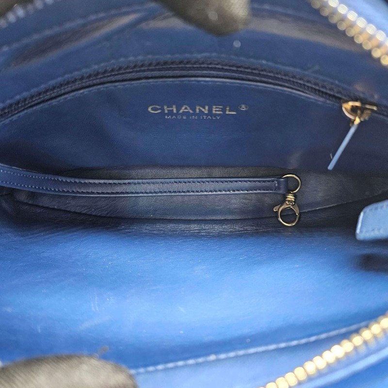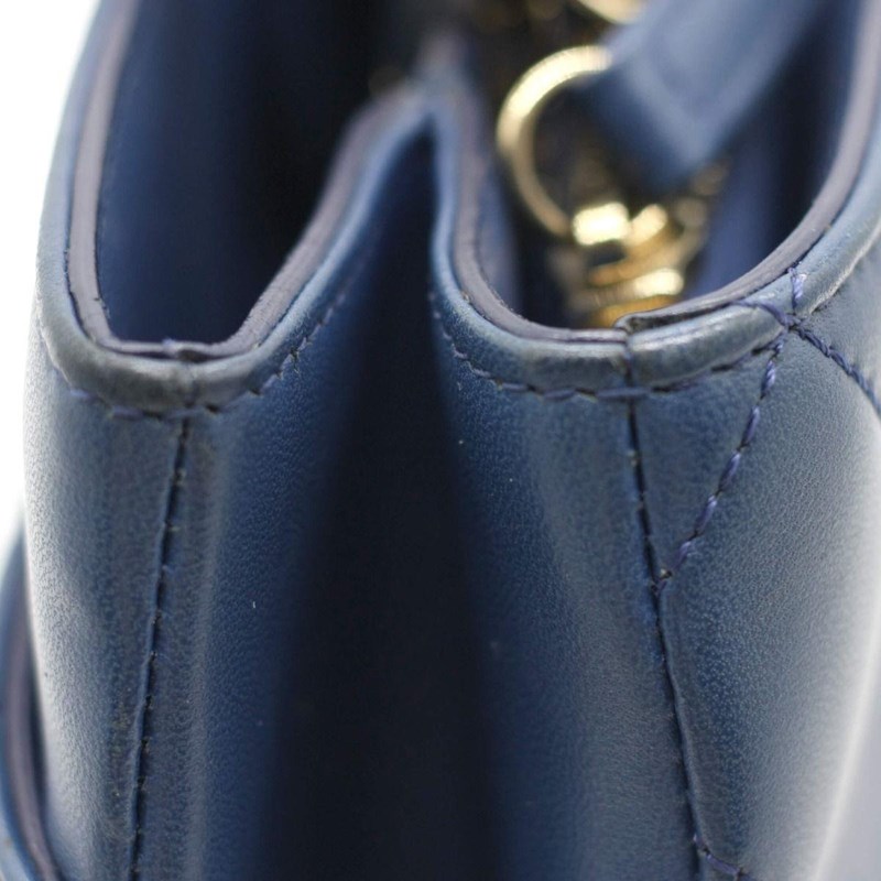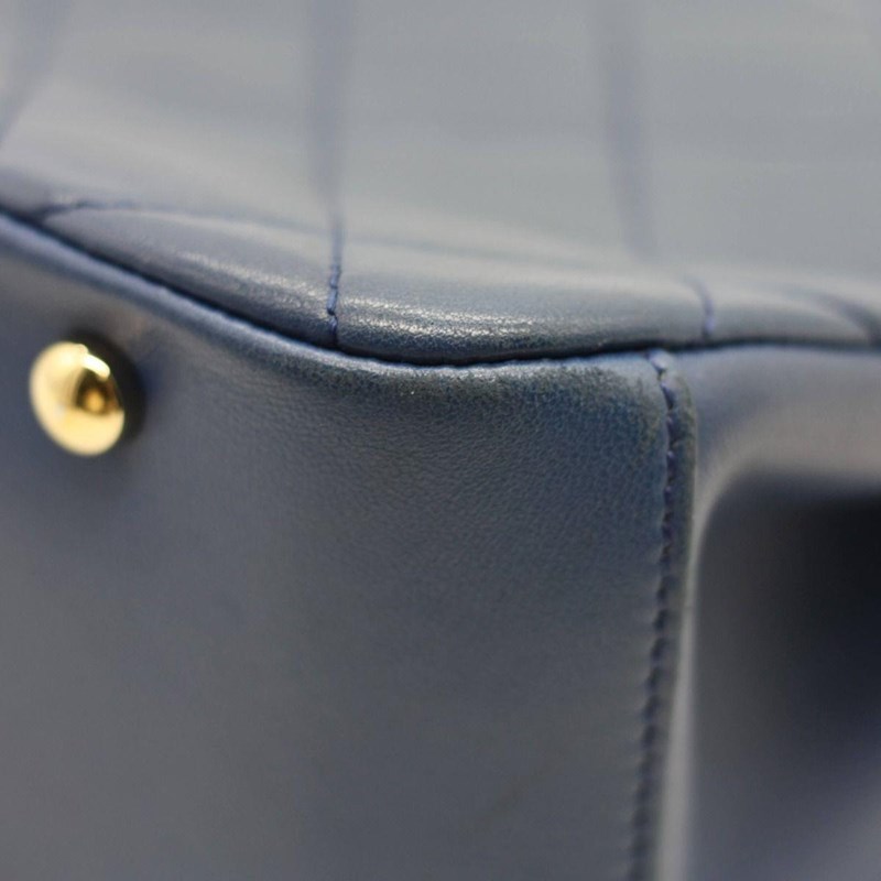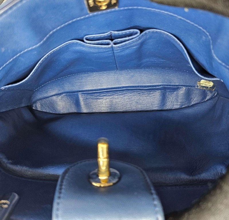 CHANEL BLUE LAMBSKIN CARRY CHIC SHOPPING TOTEThe bag features a looping light gold metal and blue leather top handle, a leather threaded light gold chain shoulder strap, and a patch pocket on the front.The full-facing flap opens with a CC turn-lock to a blue leather interior with two patch pockets.Length: 27cmHeight: 18cmDepth: 10cmHandle Drop: 7cmStrap Drop: 42cm AdjustableExterior MaterialLeather with gold-tone hardware, single top handle, a front patch pocket, protective metal feet and a shoulder strap.Interior MaterialLeather lining with two main compartments, a zipped pocket and two patch pockets.Additional Condition Report- Moderate sign of wear and stains on exterior- Moderate scuffs on exterior corners and along edges- The interior is clean with sign of wear- Minor scratches on hardwareComes With- Original Box- Original Dustbag- Authenticity Card- Care Book- ReceiptCROSSED DOCKED 155335+21