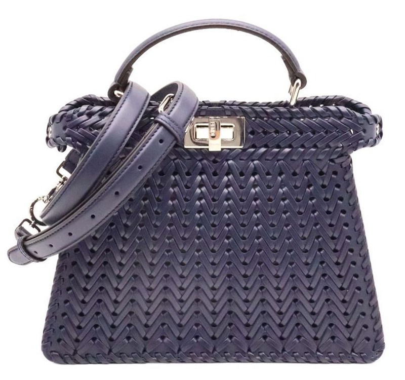 FENDI MIDNIGNT BLUE WOVEN LEATHER PEEKABOO ISEEU SMALLItem Size: Height: 20cm, Width: 27cm, Depth: 12cmExterior MaterialLeather With Silver-Tone Hardware, Single Top Handle, Twist Lock On Both Sides And A Shoulder Strap.Interior MaterialLeather Lining With Two Main Compartments And A Slit Pocket.Additional Condition Report- Merely Sign Of Wear On Exterior- Minor Wear In Interior- Hairline Scratches On HardwareHandle Drop: 7CmStrap Drop: 46Cm Detachable AdjustableComes With- Original Box- Original Dustbag- A Detachable Strap- ReceiptCROSS DOCK155511+32