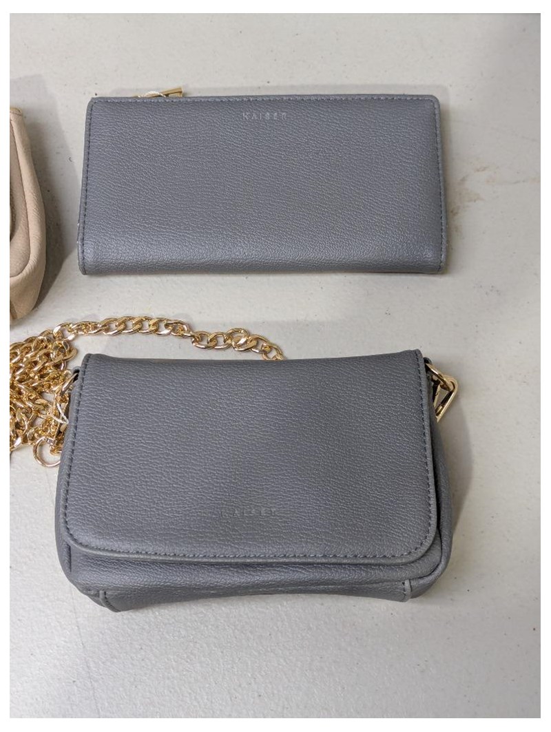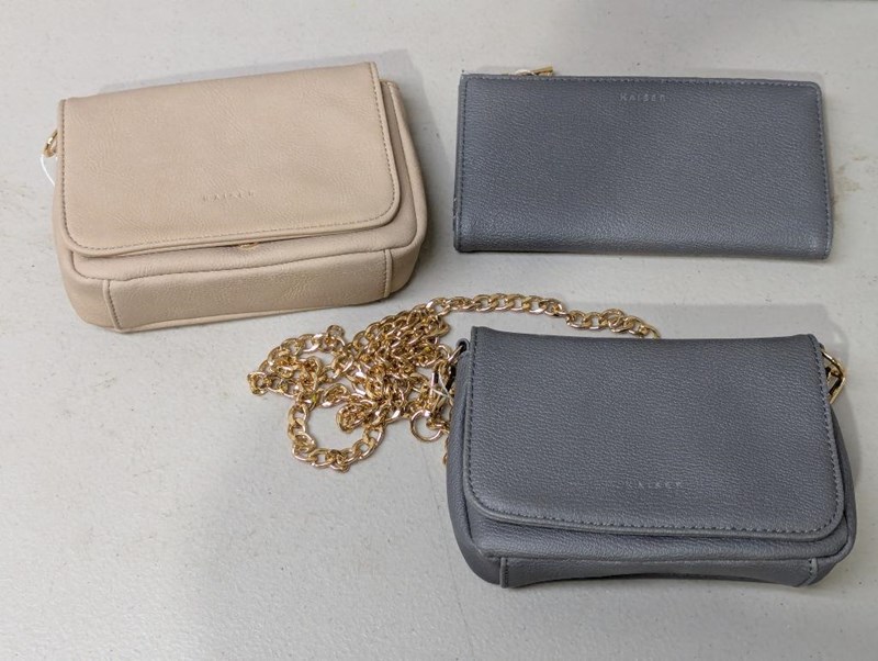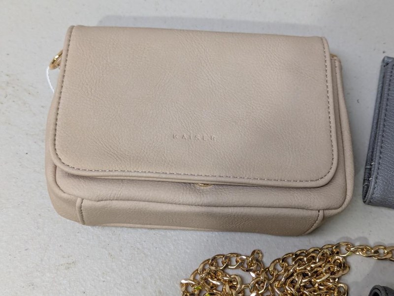 3 x KAISER Purses, Crossbody Bags, Grey & Beige Faux Leather with Gold Tone Hardware, NEW with Tags, RRP$90