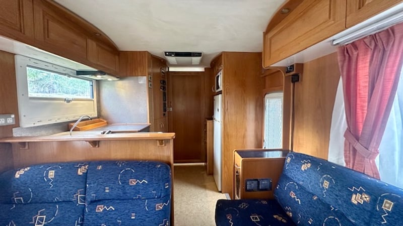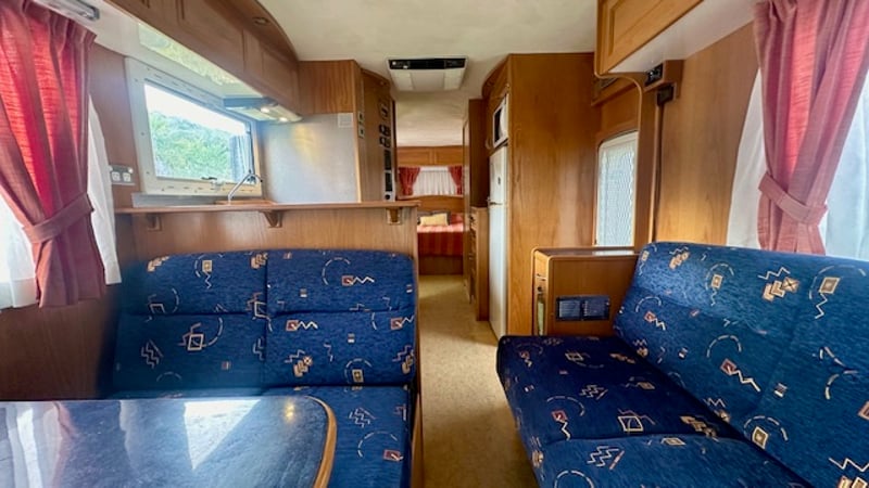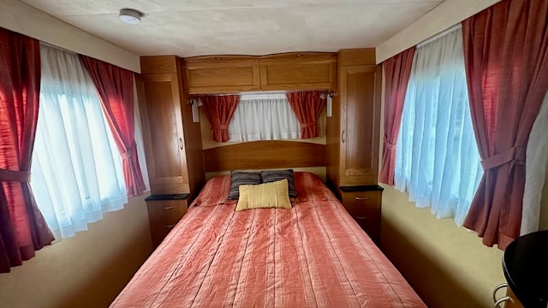 Walk around double bed at rear of vehicle in a separate bedroom.