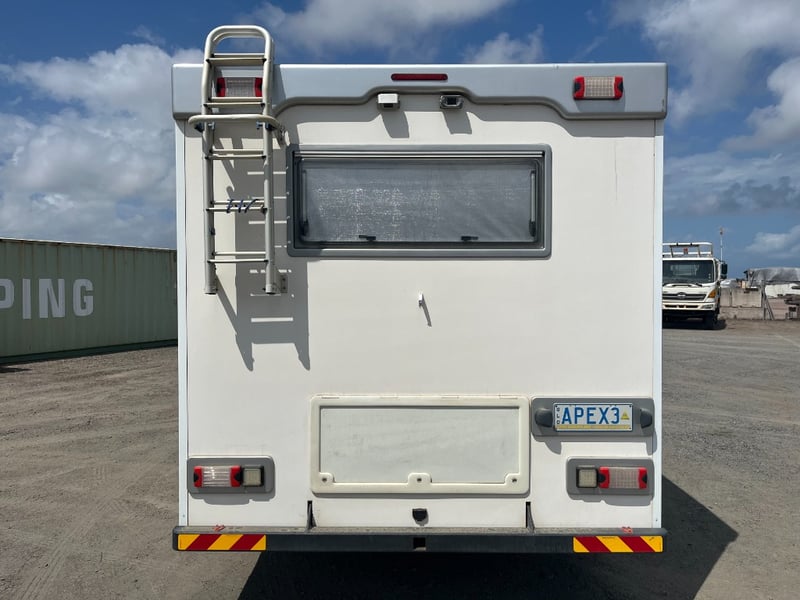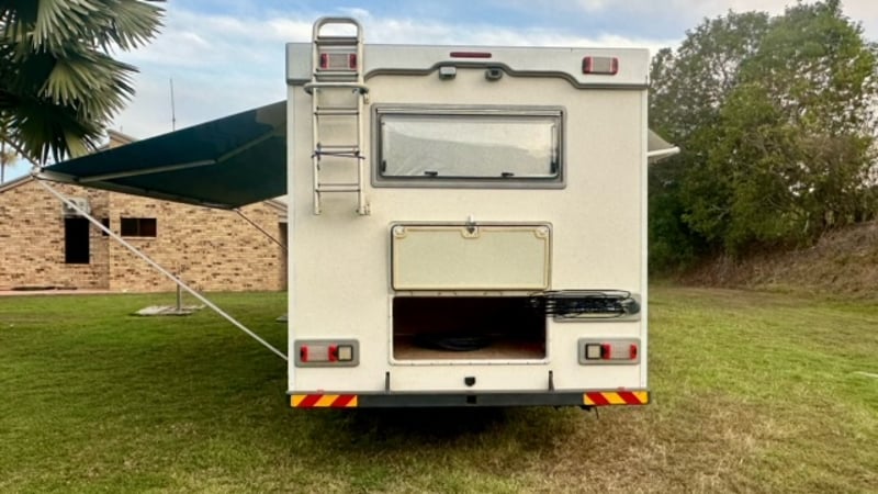 Permanent external ladder at rear of vehicle for roof access – can walk on the roof no problem due to use of strong construction material.