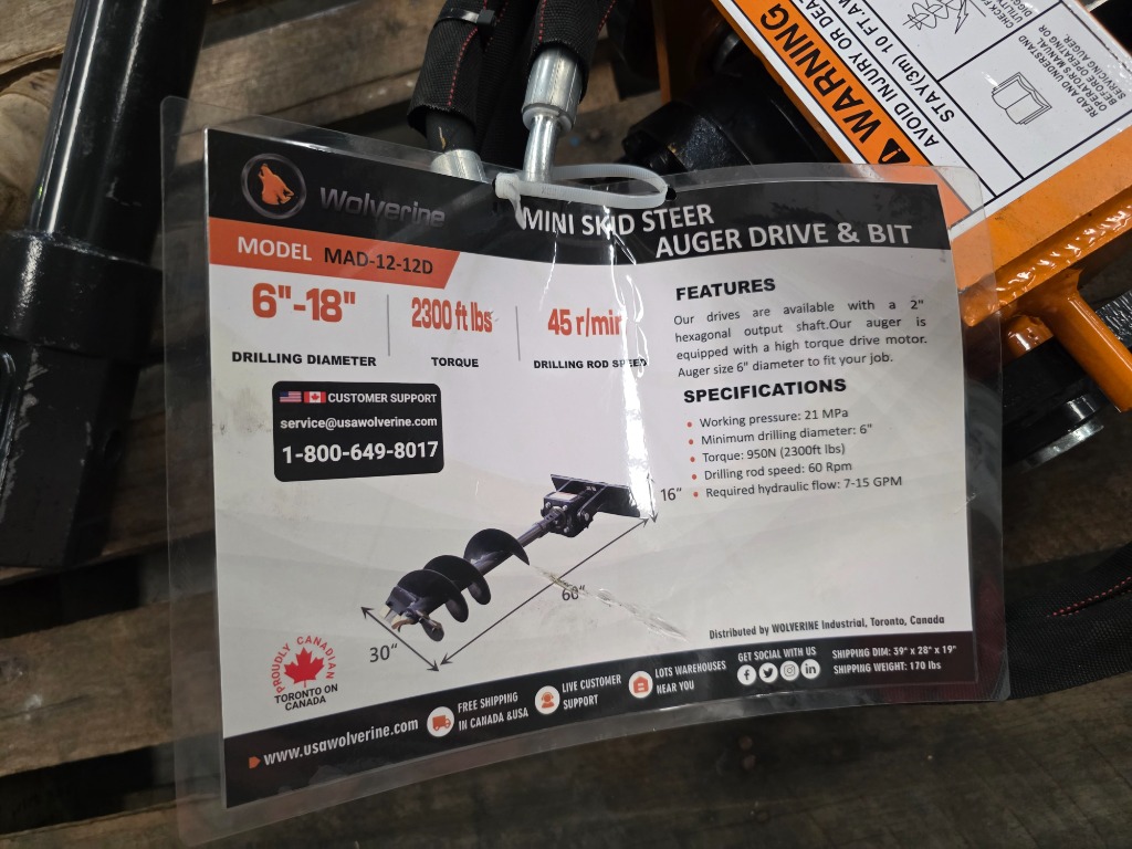 ** FACTORY DIRECT ** Unused 2025 WOLVERINE, Mini Auger Drive & Bit, MAD-12-12D Unused 2025 Mini Skid Steer Auger Drive & Bit Attachments Working pressure: 21MPa, minimum drilling diameter 6" torque 950N(2300ft lbs), drilling rod speed 45rpm, required hydraulic flow 7-15GM, suitable for skid steer loader. Measurement Approx: 1000*720*490 Weight Approx: 75kg Contact: King Cheung - 0477 987 576 or [email protected] Please note: minor scuffs and marks may be evident Note: OEM images and VIDEOS shown are for illustration purposes only, and used as a guide only, inspections highly recommended.