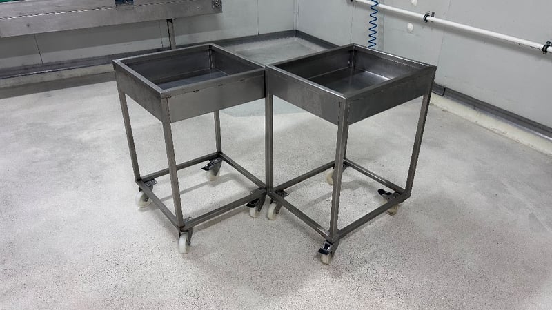 Trolleys, 2 x Stainless Steel Trolleys, On Wheels.Dimensions: H:86cm x W:50cm x D:60cm.Sold As Lot.